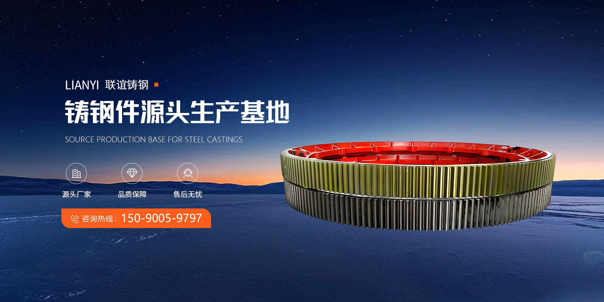 新鄉市聯誼鑄鋼有限公司,位于風景秀麗的蘇門山下和素有“北 國小西湖、中州頤和園”的百泉湖畔,北依太行,東臨107國道和京 廣鐵路,南臨新晉高速三公里交通便利。 公司占地面積2萬平方米,固定資產1500萬元,現有員工180多 人,其中技術管理人員20人。 公司主要從事各種鑄鋼件的開發和生產,年生產能力可達2萬噸?,F擁有嚴謹的質量控制措 施、先進的生產設備和檢測設備,如15噸中頻爐2臺(套)、 無錫創想八通道光譜直讀儀,充分 嚴格保證了產品長期、穩定的高質量。公司產品屬“科技型企業”、“質量管理達標企業”并 順利通過了IS09001: 2000國際質量體系認證。 產品有大型輪帶、磨盤體、齒圈、托輪、端蓋、中空軸、橋梁支座、動鄂、上、下橫梁, 活動橫梁,側梁,底座、砧座、機身、立柱、電液錘支架、中大型冶金軋機機架,軸承座,渣 罐等。產品涉及行業有水泥礦山、鍛壓、船舶、冶金、工程機械、路橋、水利、核電等,為國 家重 點裝備制造業提供多品種、多規格的碳鋼、合金鋼鑄鋼件。 我公司深耕鑄造行業三十余載,以匠心與服務贏得信賴。我們始終謙遜傾聽客戶 需求,以真誠態度打磨細節,致力于為每位客戶提供精準解決方案。感恩同行,不負期待